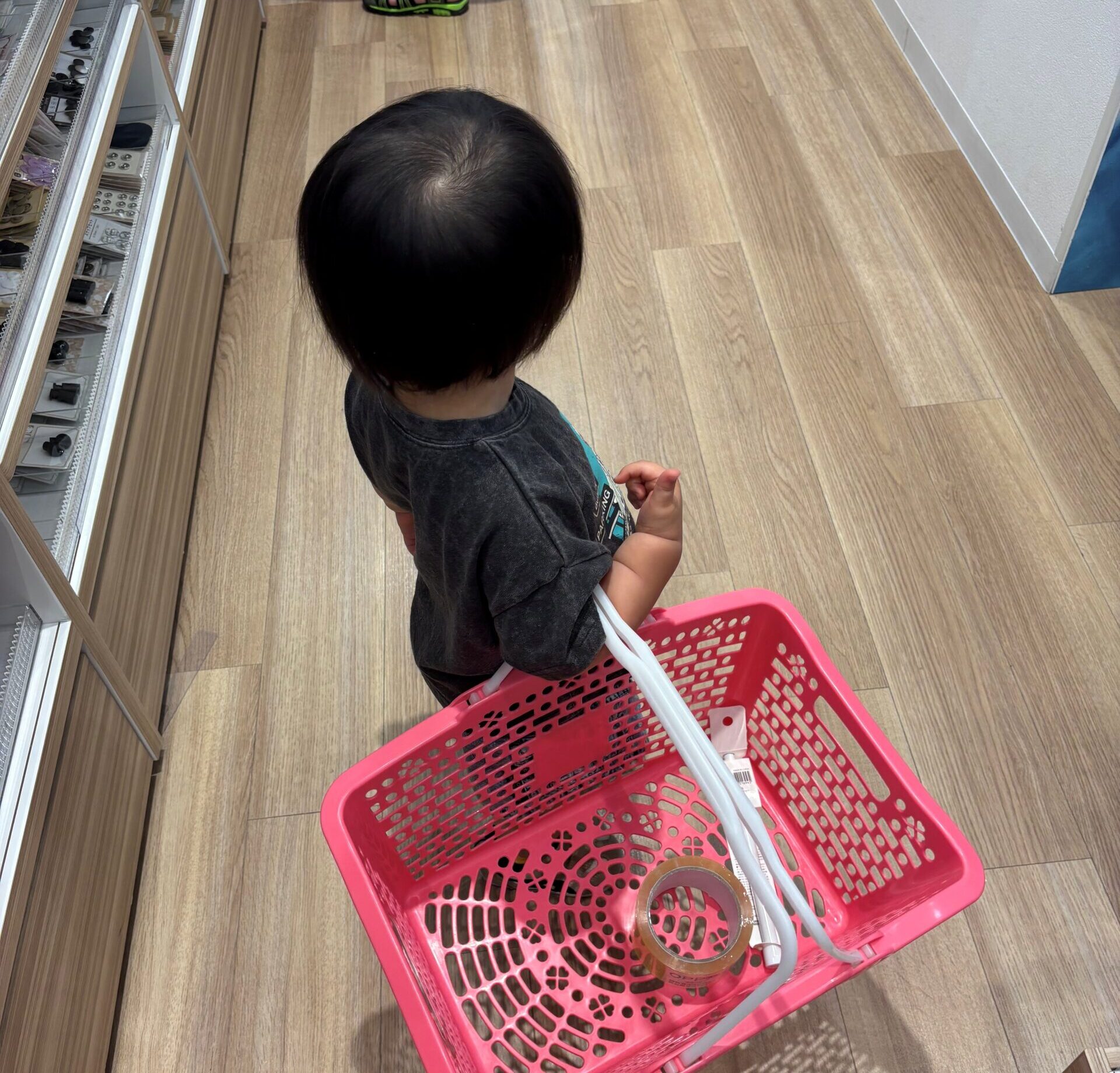 写真は、高熱から復活し、元気に買い物を楽しもうとしている長男の後ろ姿です。