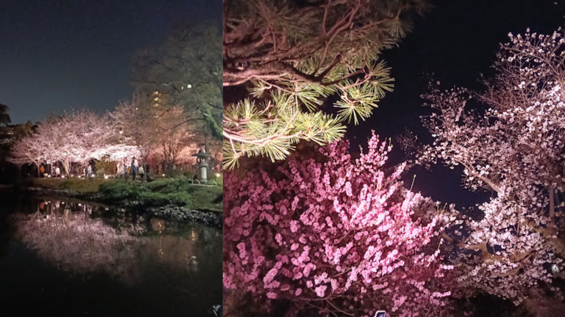 縮景園の夜桜ライトアップに行きました。意外と混雑していなかったので、よかったです。